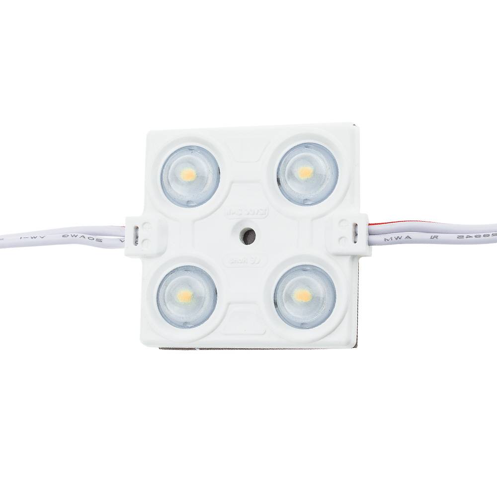 2.4W LED МОДУЛ С ЛУПА 4 2835 160° DC12V IP65 43*38*6.5mm – Топло Бяла